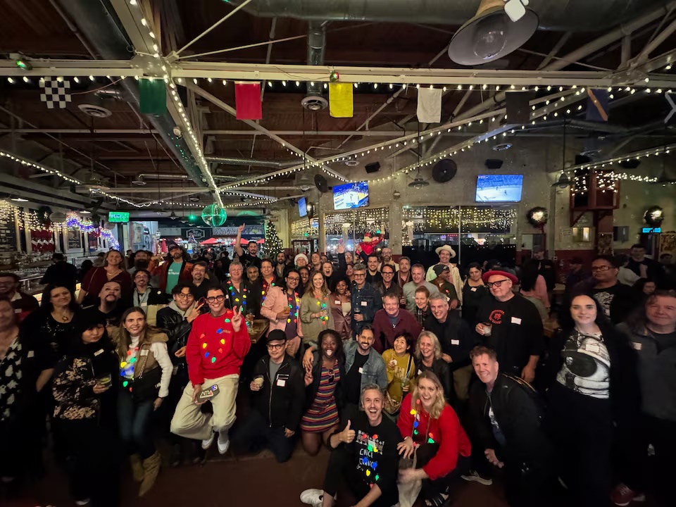 People attend a Curious Refuge Christmas party in Los Angeles, California, U.S., in this undated handout image.